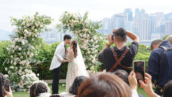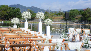 Use of golden arches adorned with flowers. This is an excellent backdrop for ceremonies or photo shooting held in wide-open spaces, as it draws everyone's attention away from the scenery and focuses them on you