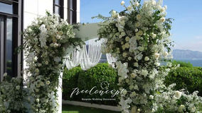 A rectangle wedding arch is a type of arch that is typically used as a decorative element during weddings. It is full flower design to have a rectangular shape with two vertical posts and a horizontal beam across the top. The arch can be decorated with flowers, greenery, fabric, or other decorative elements to create a beautiful backdrop for the wedding ceremony. The rectangle shape of the arch can provide a modern and sleek look to the wedding decor.