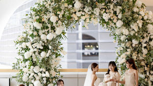 This gorgeous acrylic arch featuring different flowers seems as it's elevated weightlessly. So clean and modern, really focusing on these scenery and beautiful landscape.