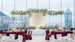 Gauze panels with long flower vines. You can add different patterns such as marble or watercolor and customize them to suit your wedding theme