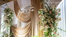 Backdrop Details . Floral QTY Code : 20v Artificial floral extend $200/ft. Size : 10' x 24' .