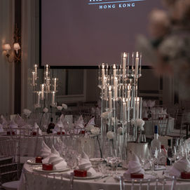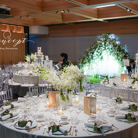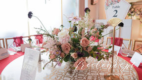 White stock centerpieces are a classic and elegant floral arrangement that feature the fragrant and delicate blooms of the stock flower. Stock flowers are often used in weddings and other special occasions because of their sweet scent and beautiful appearance. White stock centerpieces can be made using a variety of containers, such as vases, mason jars, or baskets, and can be decorated with ribbons, lace, or other decorative elements. White stock flowers can be arranged alone or mixed with other flowers, such as roses or hydrangeas, and can be designed to match the theme or color scheme of the event. The simple yet sophisticated beauty of white stock centerpieces can add a touch of timeless elegance to any event or gathering. $2,500 / TABLE