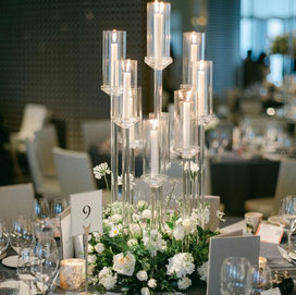A candle centerpiece is a decorative arrangement of candles that is typically placed in the center of a table or other flat surface. It can be used to create a warm and inviting atmosphere for a variety of weddings, . Candle centerpieces can be made mix with various types of candles, such as pillar candles, taper candles, or tea lights, and can be decorated with flowers, greenery, or other decorative elements. They can be simple or elaborate, depending on the occasion and personal preference.