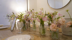 A small jar centerpiece is a simple yet charming floral arrangement that can be created using small jars or vases. These centerpieces are often used for weddings, bridal showers, baby showers, and other special events. Small jar centerpieces are easy to make and can be customized to match the theme or color scheme of the event. To make a small jar centerpiece, you would fill each jar with flowers, greenery, or other decorative elements, and then arrange the jars in the center of the table. The jars can be tied together with ribbon or twine to create a cohesive look. Small jar centerpieces can be made using a variety of flowers, such as roses, daisies, or wildflowers, and can be a beautiful and cost-effective way to decorate for an even