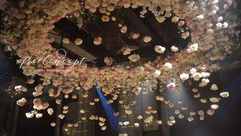 The atmosphere for the reception in the Grand Ballroom was one of playful sophistication. Enormous circles of hanging crystals, strings or floral set, each with its created a elegant and sparkling atmosphere.